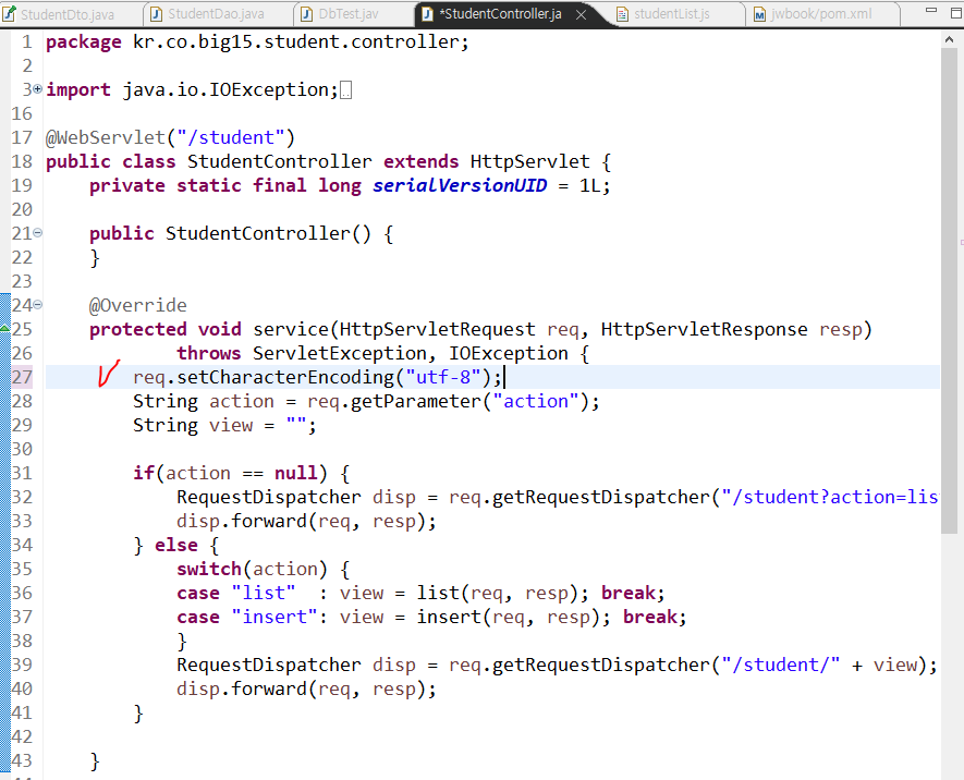 req.setCharacterEncoding("utf-8"); 문장 추가하기!