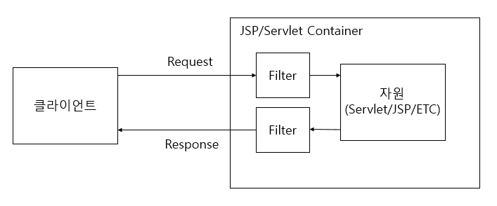 Filter는 요청(Request)과 응답(Response)에 대한 정보들을 변경할 수 있게 개발자들에게 제공하는 서블릿 컨테이너 이다.