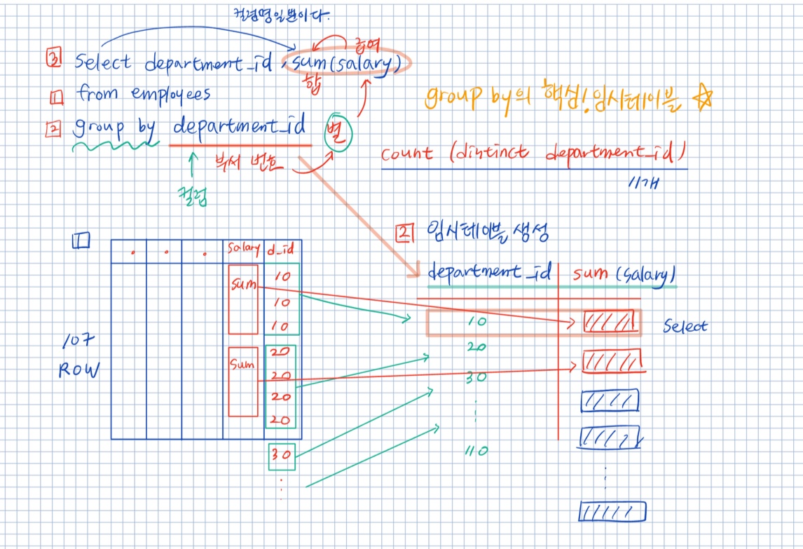 -- GROUP BY의 핵심! 임시 테이블!!!