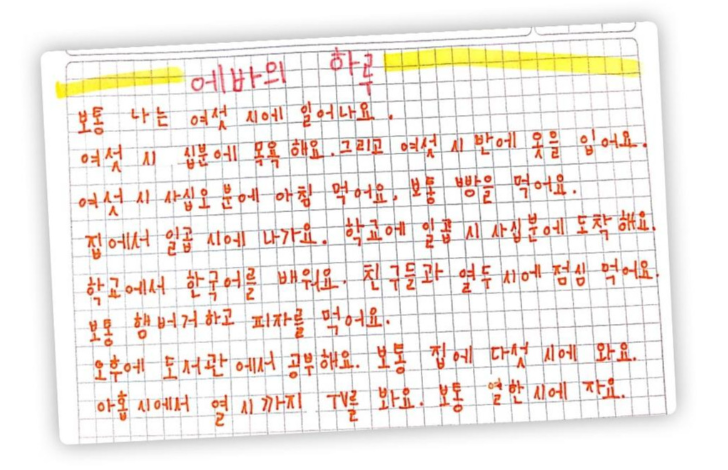 | Ch10. ¿Qué hora es? 몇 시 입니까? (0) | 2022.09.13 |