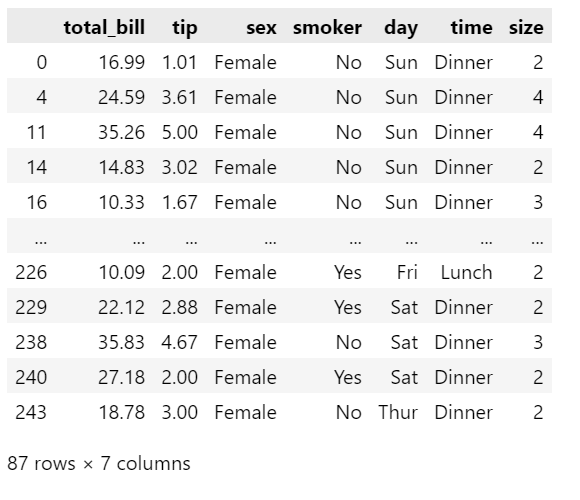tips['sex'] # 성별의 값이 변경되지 않았다. 새로운 시리즈를 만들어야함.