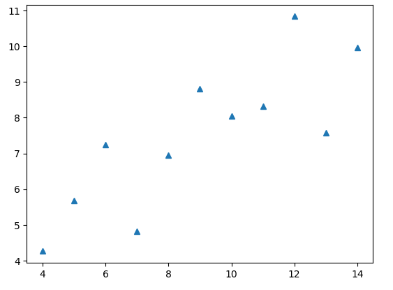 plt.plot(dataset_1['x'], dataset_1['y'],'^')