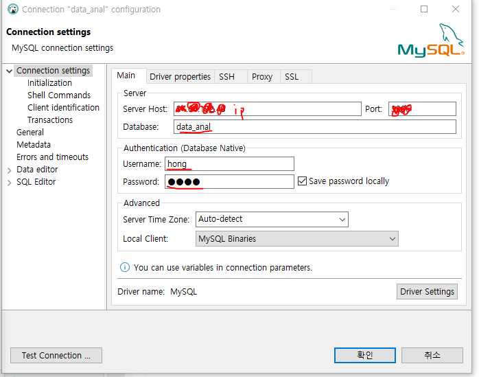 root DB를 열고, data_anal 비밀번호를 주니 안되는 건 당연지사.