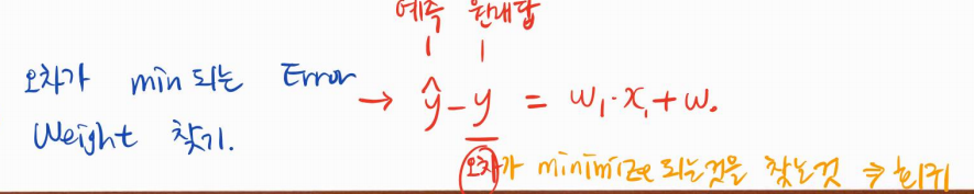1. 회귀 소개 : 데이터 값이 평균과 같은 일정한 값으로 돌아가려는 경향을 이용한 통계학 기법. (오차가 minimize 되는 것을 찾는다.) 여러 개의 독립변수와 한 개의 종속변수 같의 상관관계를 모델링하는 기법을 통칭한다.