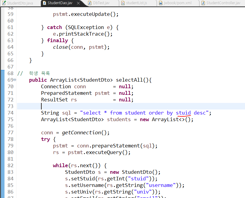stuid인데 studid라고 타이핑 친 것...ㅎㅎㅎ 오타만 난 것이라면 다시 수정하면 되는 것이지만... 그래두 에러를 마주하면 가슴이 철렁 내려 앉는 것은 어쩔 수 없다~~