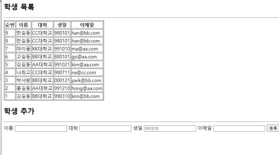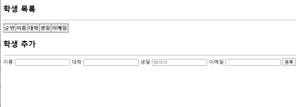 나의 경우는 학생을 추가 입력한 후에 학생 목록창이 업데이트 되며 학생을 추가하는 화면이 함께 출력되길 바랬는데
